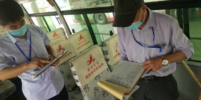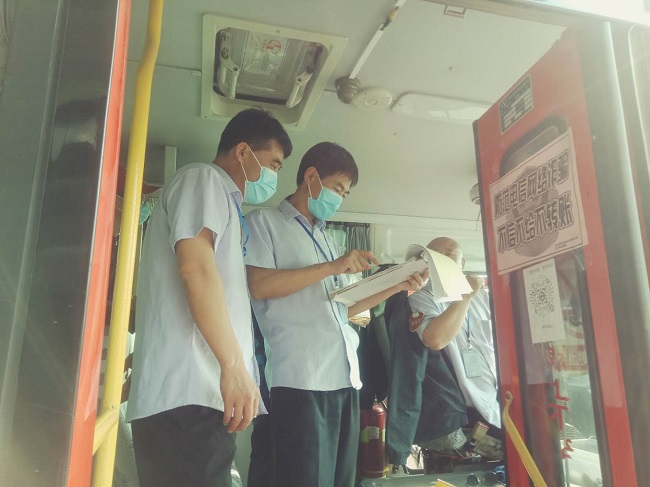 徐俊智一行重點(diǎn)檢查了疫情防控、車(chē)輛安全等防范措施落實(shí)情況,查看運(yùn)營(yíng)車(chē)輛消毒情況以及掃“津門(mén)戰(zhàn)役”二維碼并逐人測(cè)體溫登記等情況。要求駕駛員嚴(yán)格落實(shí)“三全一轉(zhuǎn)”,嚴(yán)格執(zhí)行公交車(chē)滿(mǎn)載率不超過(guò)70%的規(guī)定,牢固樹(shù)立安全無(wú)小事的思想,用心為廣大群眾創(chuàng)造一個(gè)安全有序的乘車(chē)環(huán)境。