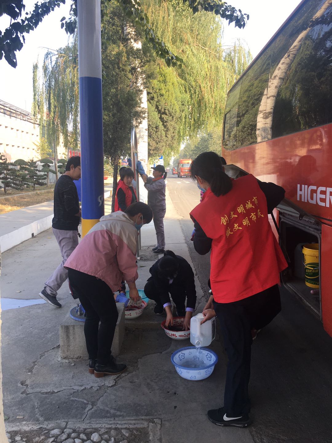 10月19日下午,我公司組織黨員干部對102國道沿線所有站牌進(jìn)行集中擦拭清理。