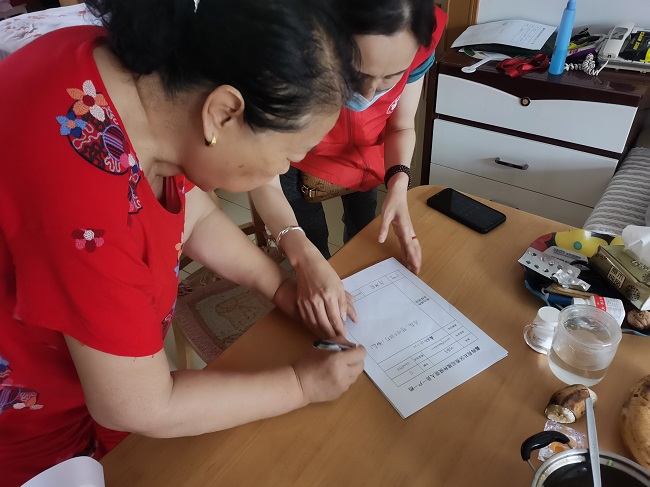 ? ? ? ? 6月26日,組織黨員志愿者到鑫海苑社區(qū)開展入戶宣傳接打疫苗活動(dòng)。