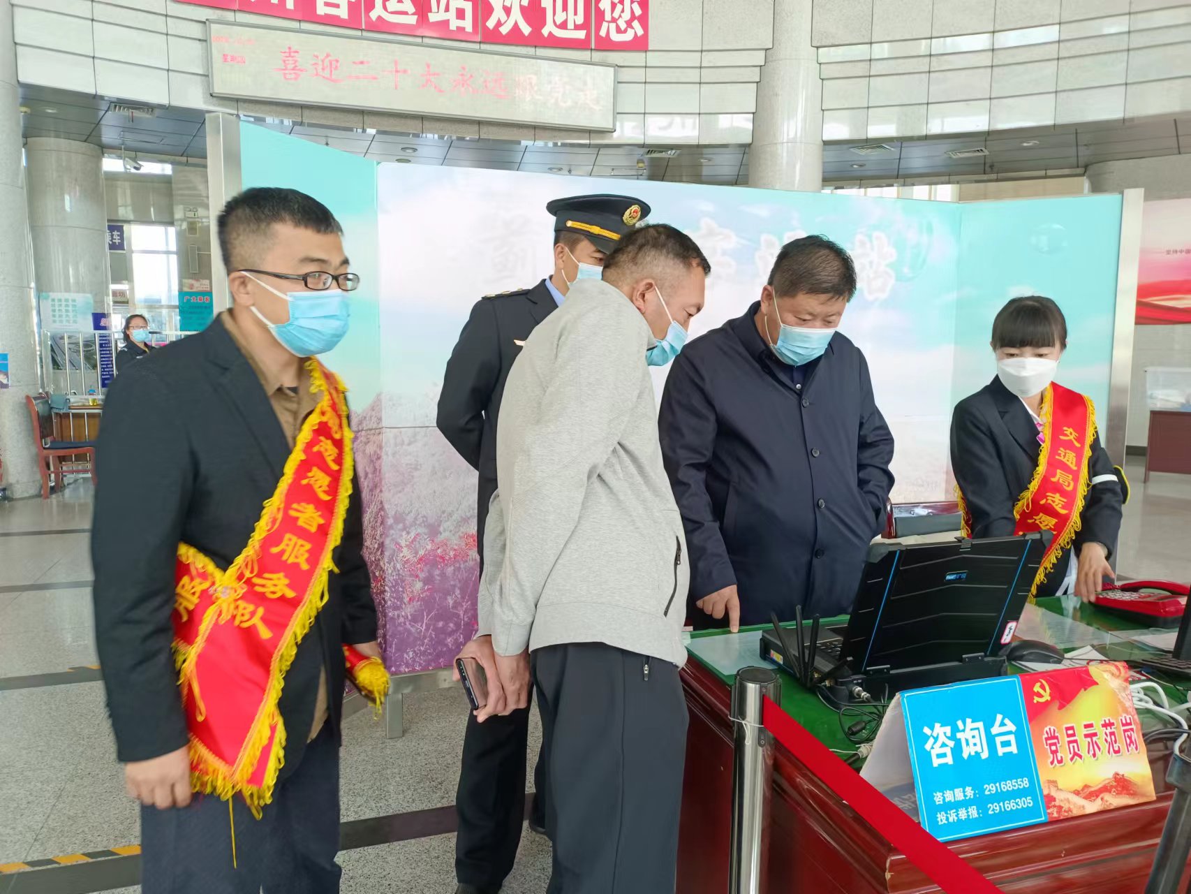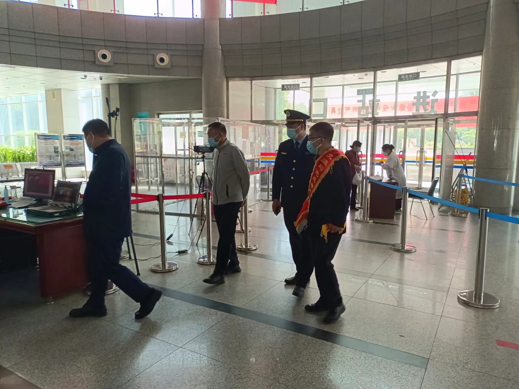 客運(yùn)站,陳樹(shù)先局長(zhǎng)現(xiàn)場(chǎng)查看了進(jìn)站口測(cè)溫掃碼、信息登記、售票大廳等情況,詢問(wèn)了解當(dāng)前客流、疫情防控、安全生產(chǎn)等工作開(kāi)展情況,對(duì)我站的疫情防控工作給予充分肯定。